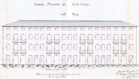 Hem de tindre en compte tot això que sabem del canvi del nom del carrer per poder trobar les llicències d’obra nova o els permisos de reformes de façana que ens donen a conéixer les construccions habituals d’aquesta nova zona de la ciutat. Així, trobem que les llicències anteriors a l’any 1889 anomenaran el el carrer com a carrer del Mar o carrer d’Alcalà de Olmo.