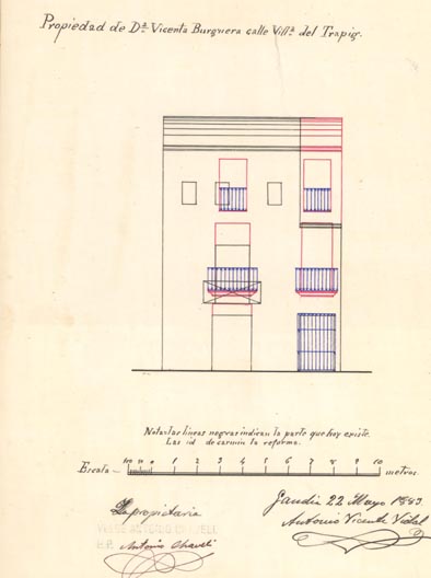 AB-1794/010 (1924). Veiem ací que la moda també afectava altres elements: “(…) reparar los balcones (…) solo ha de consistir en variar los pisos antiguos de azulejos por los de porland, en canviar el maderaje de los mismos, que es viejo, de acuerdo con lo previsto en las ordenanzas municipales”.