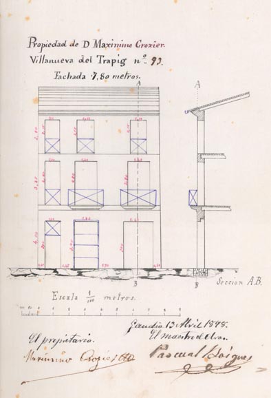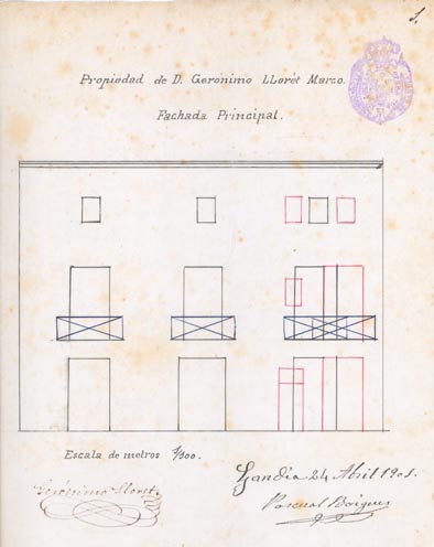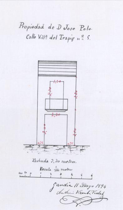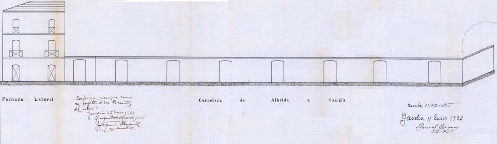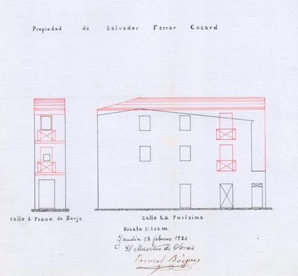 A l’Arxiu Històric de Gandia trobem l’expedient de sol·licitud per a reforma de l’habitatge situat en el Nº 42 de la calle de San Francisco de Borja, i la primera cosa que ens crida l’atenció és que es diu que el saló té una capacitat per a 300 persones. No sabem del cert a quin edifici actual correspon, però un edifici tan gran i en un carrer que pràcticament no ha canviat el parcel·lari ni els números de policia, amb bastant certesa el podríem trobar en la cantonada entre l’actual número 40 del carrer de sant Francesc de Borja i el número 1 del carrer de Jaume Torres.