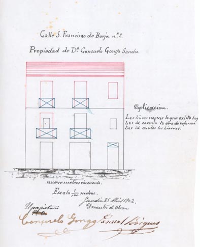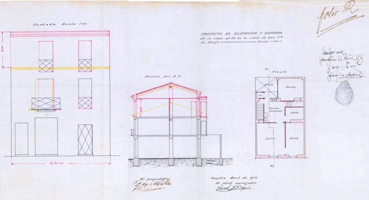 Un altre fet singular de l’expedient era la persona qui apareixia de propietària: Joaquín Ballester Lloret. I, a més a més, encara que no conté cap plànol, sí que ens informa de la demanda que es planteja: es tracta d’acondicionar un saló d’actes per al Sindicat de Dones Obreres.